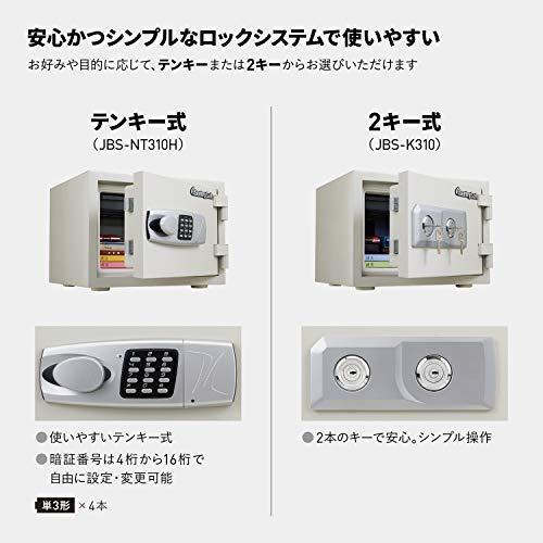 黒のボディがシンプルでかっこいいこちらの金庫は、防犯性や耐火性が高く人気を集めています。暗証番号と回転ノブのダブルロックですが、緊急時にはスペアキーを使っての開錠も可能。また、暗証番号が不正であった場合には防犯ベルで異常を知らせてくれます。取り外しのできる中棚つきですので、入れるものによってスペースの使い方を工夫できるのもポイントです。