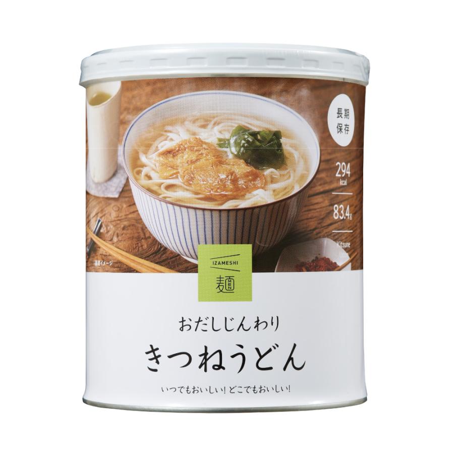 ごはんやパンだけでなく、災害時にも麺が食べたい!という方におすすめしたいのが、イザメシが販売するうどんです。3年間の保存が効く缶詰のうどんは、スタンダードなきつねうどんだけでなく、お餅入りでエネルギー補給にもおすすめのちからうどん、変わり種が欲しいときに活躍する鶏南蛮カレーうどんなどもあります。